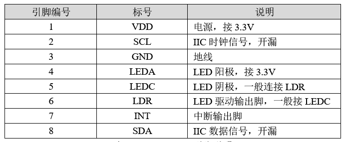 AP3216C的引脚说明如下表所示。