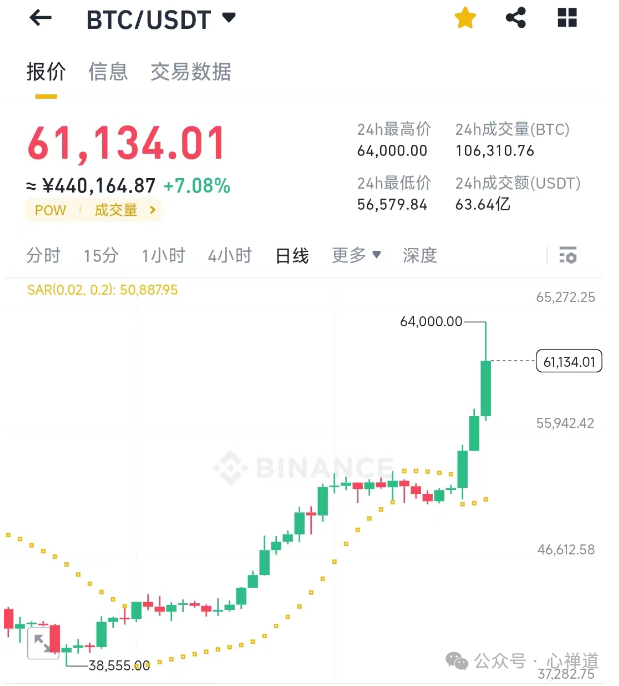 比特币已经涨了 64000/15000=4.26倍了,牛市已过前半段