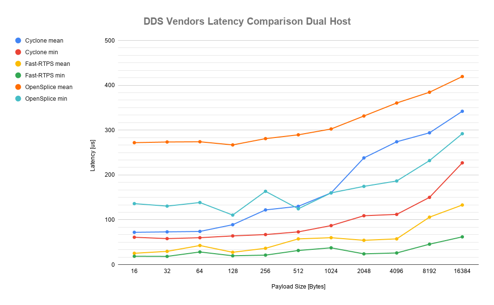 而对于实时性,由于DDS在诸多工业和产业有诸多应用,具有良好的生态,其性能毋庸置疑。如下图的测试结果: