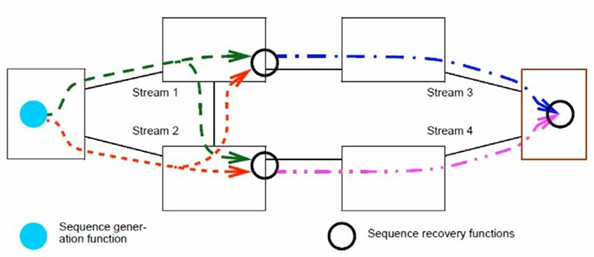 802.1CB 主要是通过交换机硬件的报文复制功能实现发送端数据帧的,在交换机指定转发端口处的复制,并通过不同的交换机传输路径发送至最终目的节点所在的交换机连接端口,然后在该交换机端口利用交换机硬件的对特定协议复制帧的重复消除,进而利用网络拓扑中的冗余路径实现在传输链路中实时的可靠性数据备份,并且不增加软件收发数据产生的额外负载;相比传统的通信错误恢复机制,能够在正常通信链路发生错误时, 利用在冗余路径中的实时数据保证通信不间断,且延时仅是冗余路径中多余交换机节点的转发延时,一般在 10us 左右,可以非常好的满足高实时高可靠性的应用场景。
