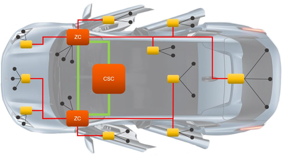 未来的车载网络将以中央计算大脑为车辆中心,以区控制器为局部中心,基于以太网作为骨干网的环状拓扑进行部署,为全车的智能化提供超大的带宽和连通性。