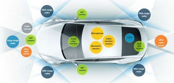 达,1~6 个毫米波雷达,12 个超声波雷达,4~8 个环视摄像头(鱼眼和侧视),1 个前视高清识别摄像头,1 个前视 DVR 摄像头,1 个后视倒车摄像头,1 个DMS 摄像头,通过车内网络节点具备的硬件支持的802.1AS gPTP 时钟同步功能,可以将各个传感器的时钟同步误差压缩到100ns~1us 以内,基本上满足了车辆在高速和低速运行中各个场景的驾驶控制需求。