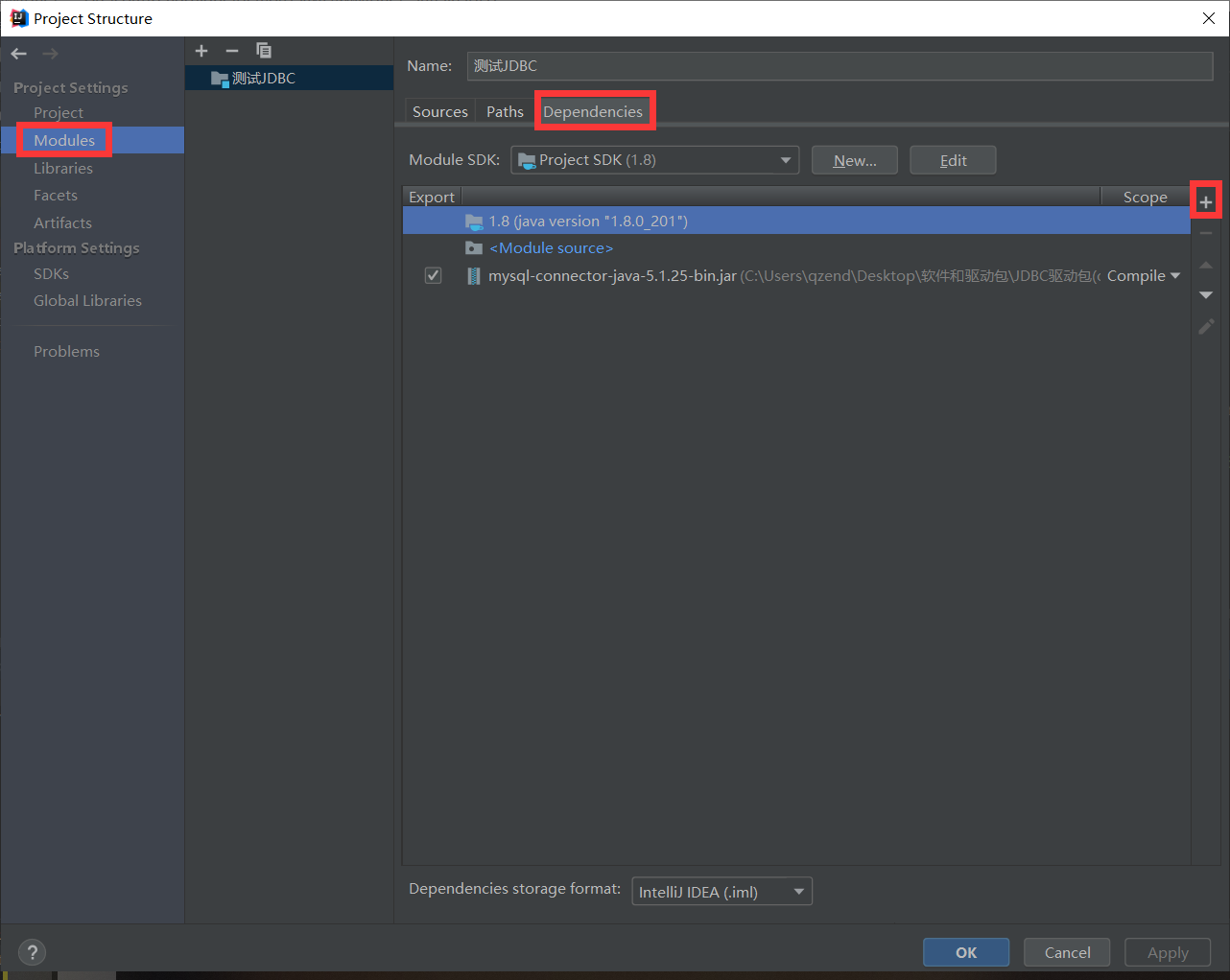 点击 File -> Project Structure(快捷键 Ctrl + Alt + Shift + s),点击Project Structure界面左侧的“Modules”显示下图界面。