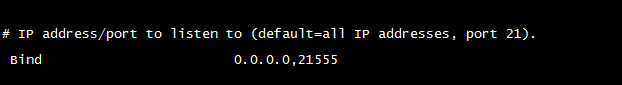 把前面的#号去掉,然后把127.0.0.1改为0.0.0.0,如果本来就是0.0.0.0就不用更改,因为我试过如果不改会登录不成功,接着把21端口改为自己想要的端口号,我这里改为21555端口,然后输入wq!保存并退出,输入以下命令重启pureftpd服务。