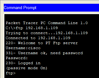 打开PC端的Desktop栏下的Command Prompt,输入ftp 192.168.1.109,之后再输入用户名和密码