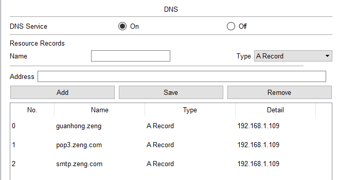 DOMAIN NAME SERVER:192.168.1.109;服务器的域名;