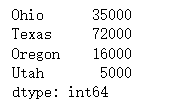 sdata={'Ohio':35000,'Texas':72000,'Oregon':16000,'Utah':5000}