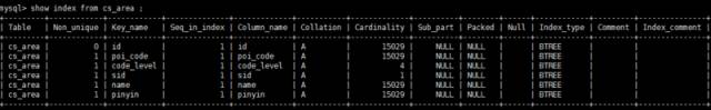 analyze table cs_area 更新索引统计信息,便于优化器优化sql