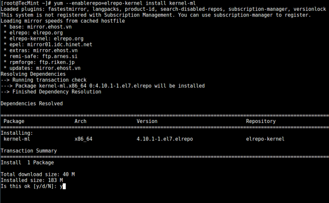 # yum --enablerepo=elrepo-kernel install kernel-ml