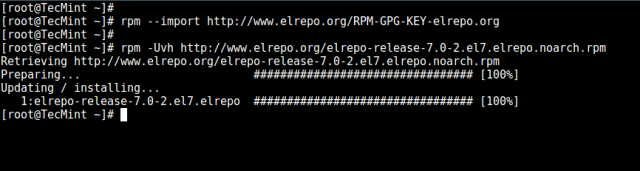 # rpm -Uvh http://www.elrepo.org/elrepo-release-7.0-2.el7.elrepo.noarch.rpm