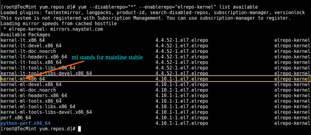 # yum --disablerepo="*" --enablerepo="elrepo-kernel" list available
