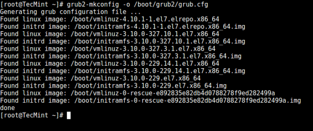 # grub2-mkconfig -o /boot/grub2/grub.cfg