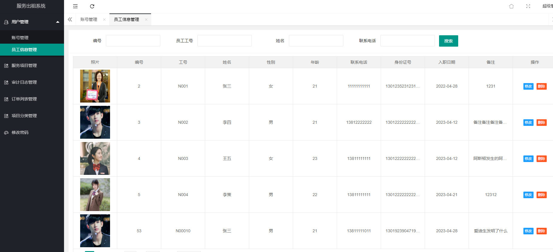 高层管理员的主要需求是管理好普通员工,普通员工的需求是协助客户(即购买服务的人)完成服务购入/归还信息的登记