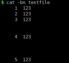 $ vim testfile $ cat testfile 123 123 123 123 123