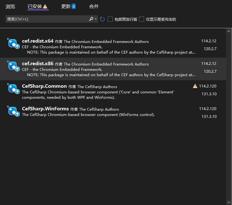 CefSharp版本,安装的话直接在NuGet就好了,也非常快