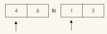 这个时候,需要对这两部分的处理结果进行合并处理,合并的时候需要一个额外的空间(设为A)来存储此合并结果,合并完后,再将此空间内的数据,覆盖到原空间中去。合并处理流程如下:同时对左右两部分中的元素进行遍历,如下图所示: