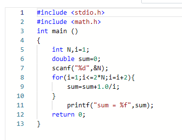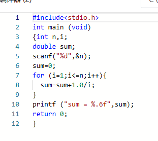 数据表达:我用了变量i,N,sum。i,N为整型数。sum为双精度浮点数。