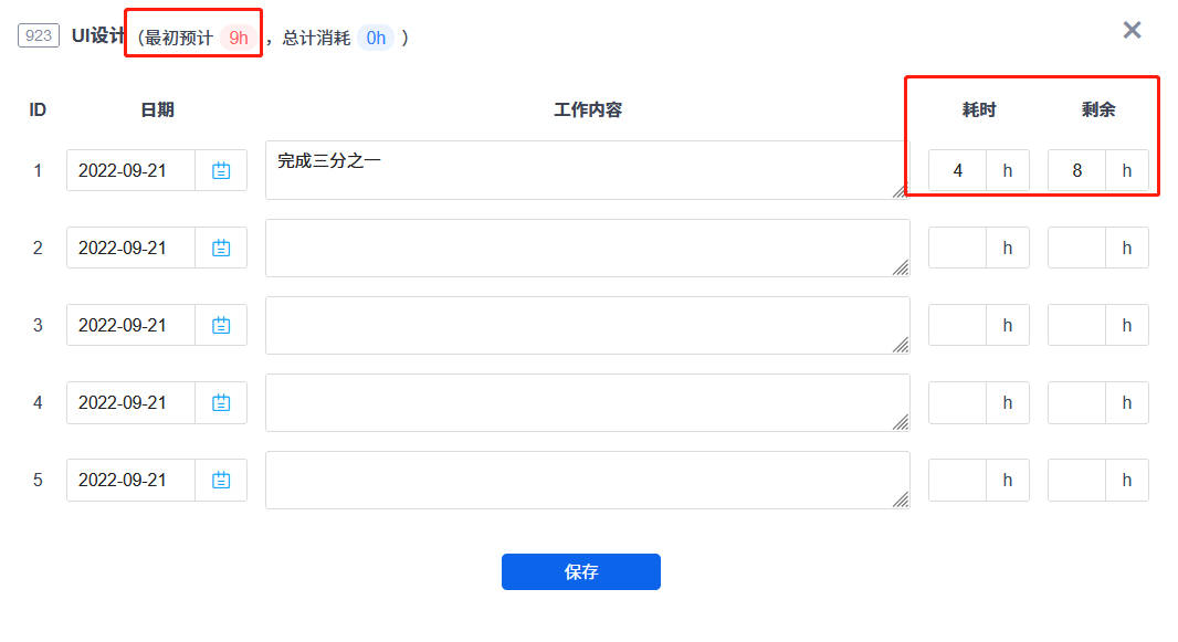 - 总计消耗:指开发这个任务目前已消耗的工时