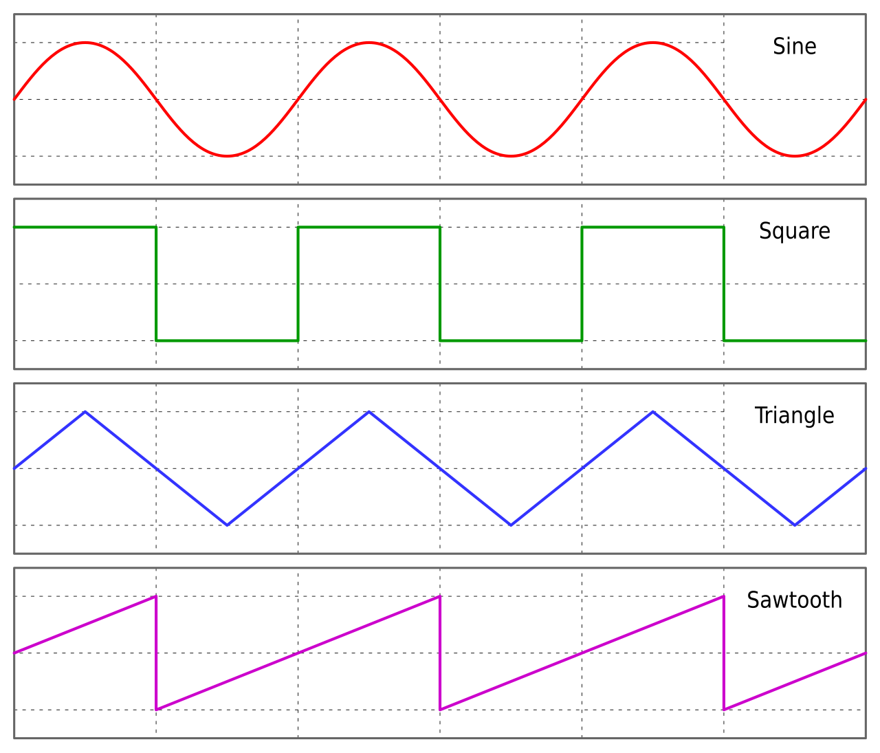 方波是一种以定期间隔开关(变高和变低)的电压信号,可看作是占空比为 50% 的矩形波。