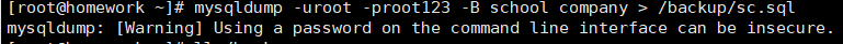 mysqldump -uroot -proot123 -B school company > /backup/sc.sql