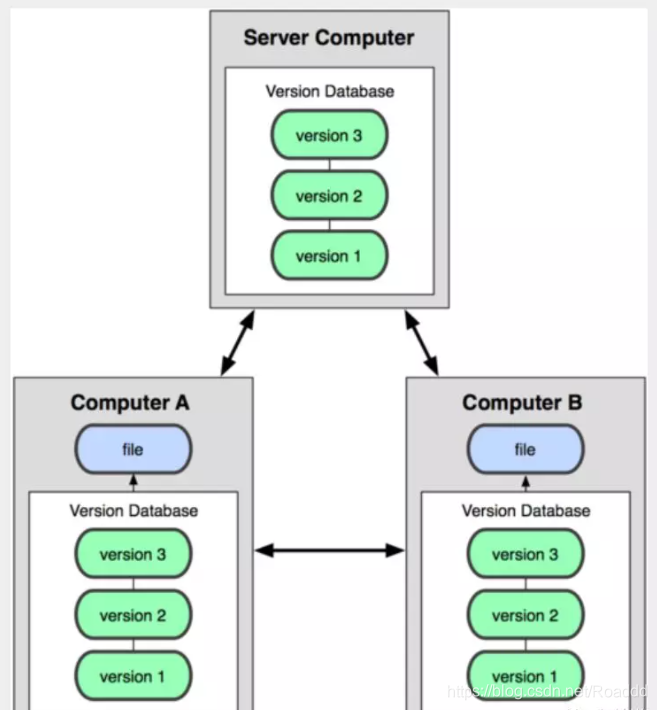 所有版本信息仓库全部同步到本地的每个用户,这样就可以在本地查看所有版本历史,可以离线在本地提交,只需在连网时push到相应的服务器或其他用户那里。由于每个用户那里保存的都是所有的版本数据,只要有一个用户的设备没有问题就可以恢复所有的数据,但这增加了本地存储空间的占用。