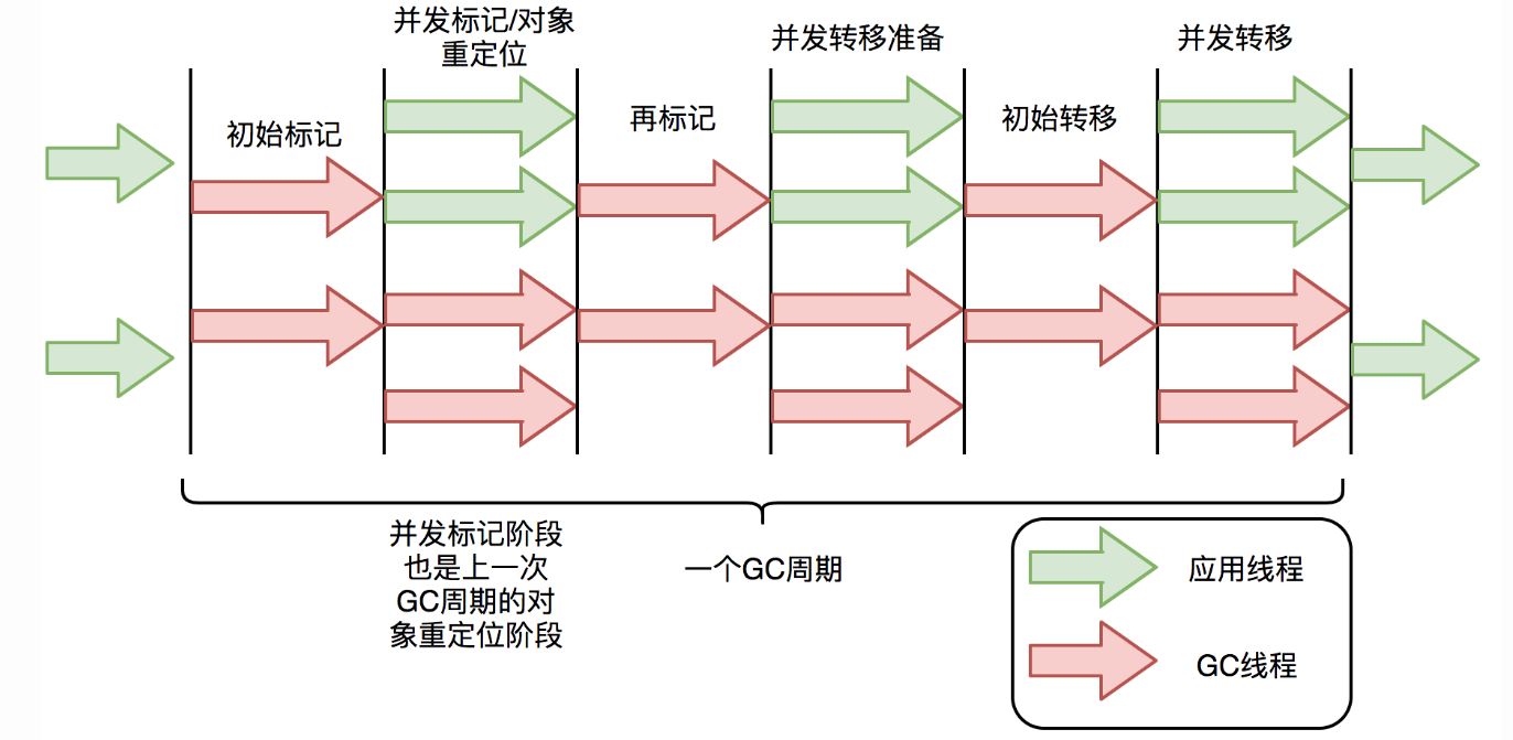 与CMS中的ParNew和G1类似,ZGC也采用标记-复制算法,不过ZGC对该算法做了重大改进:ZGC在标记、转移和重定位阶段几乎都是并发的,这是ZGC实现停顿时间小于10ms目标的最关键原因。