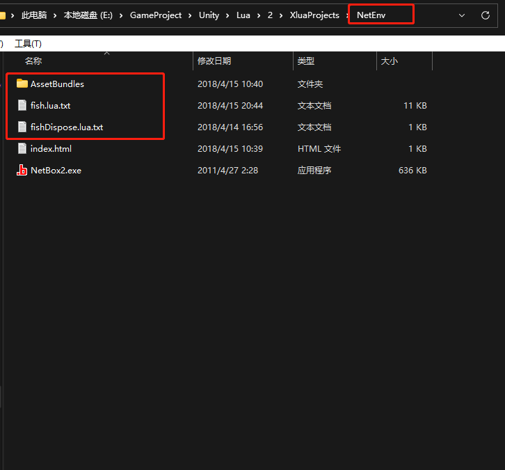 利用NetBox2临时搭建简单服务器,需要将lua文件和AssetBundle资源放入同一文件夹内。
