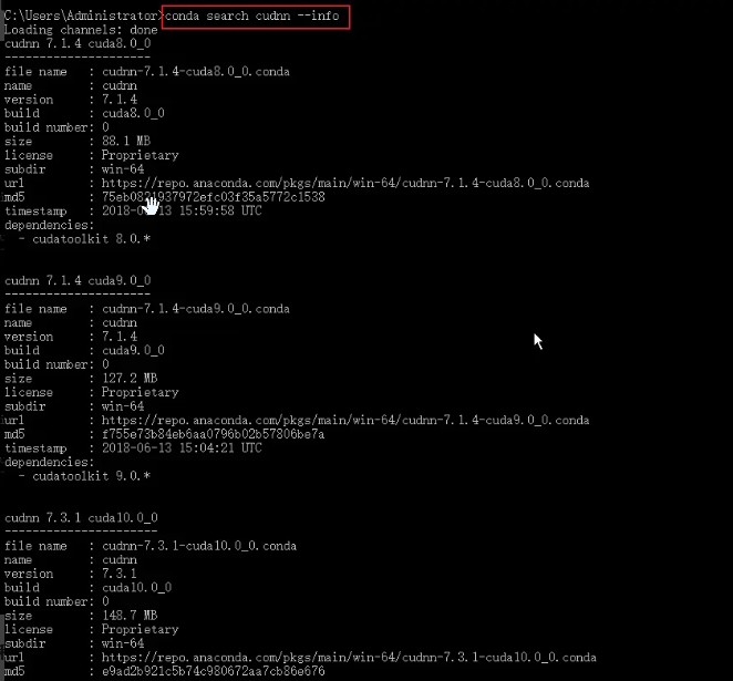 这里还是用 conda 创建一个新环境专门用于一个版本的 CUDA,要几个就创建几个,然后激活并进入,当然也要看看当前 conda 支持哪些 cuda 和 cudnn。