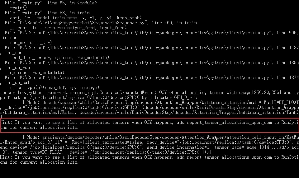 当切换后安装 tensorflow-gpu 开始训练时,出现 “Hint: If you want to see a list of allocated tensors when OOM happens, add report_tensor_allocations_upon_oom to RunOptions for current allocation info”,因为当前显卡 GTX 750Ti,显存太小,可以将批次 batch_size 调小解决。