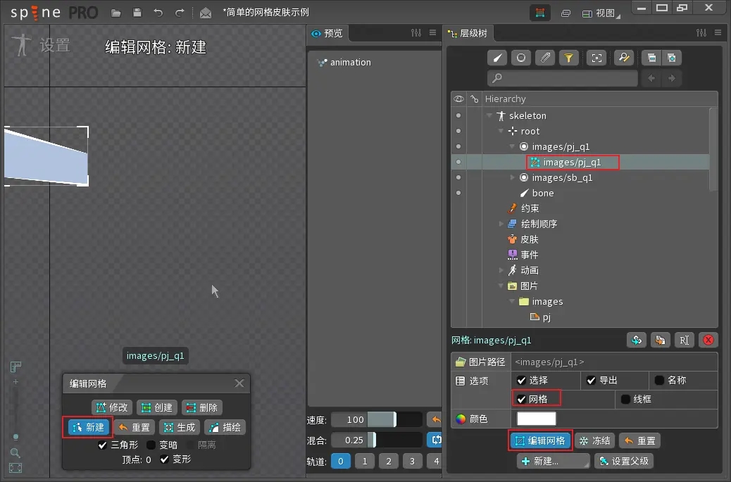 第二张图片重复前面的添加网格,但是不用再新建骨骼,和第一张共用,皮肤切换的作用就在这里了,多个皮肤共用一套骨骼动画。