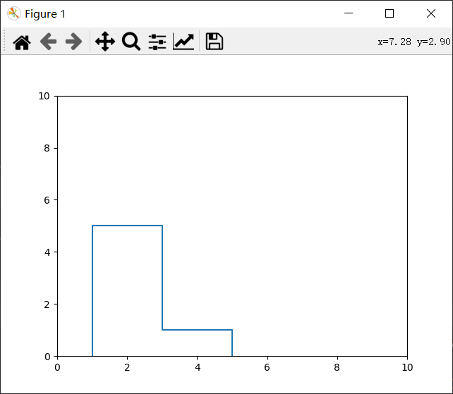 ax.plot("x","y", data=dict(x=[1,1,3,3,5,5], y=[0,5,5,1,1,0])) plt.show()