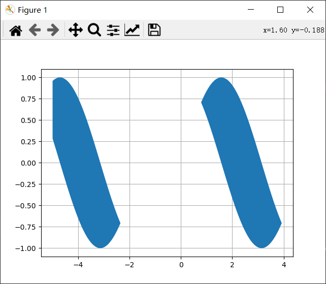 填充条件。比如where=y1>y2,则只绘制y1>y2的部分。若为 None,则对数组 x 指定范围全部填充;若为布尔数组,则填充 True 部分。