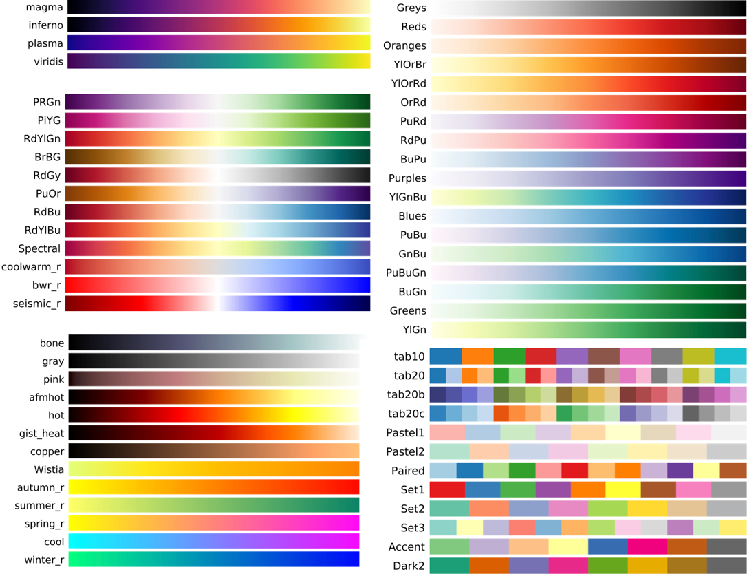 'afmhot_r', 'autumn', 'autumn_r', 'binary', 'binary_r', 'bone', 'bone_r', 'brg', 'brg_r', 'bwr', 'bwr_r', 'cividis',