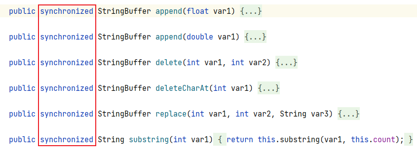 在stringbuild的源码中,方法也没有经过 synchronized 修饰,所以线程不安全
