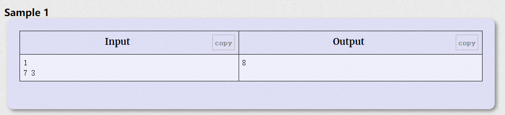 第一行是测试数据的数目 t(0 \le t \le 20)t(0≤t≤20)。