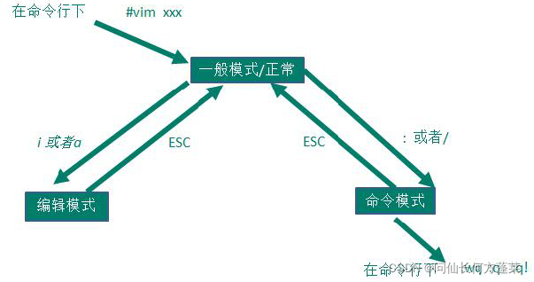 | 正常 | : 或 / | 进入命令模式 |