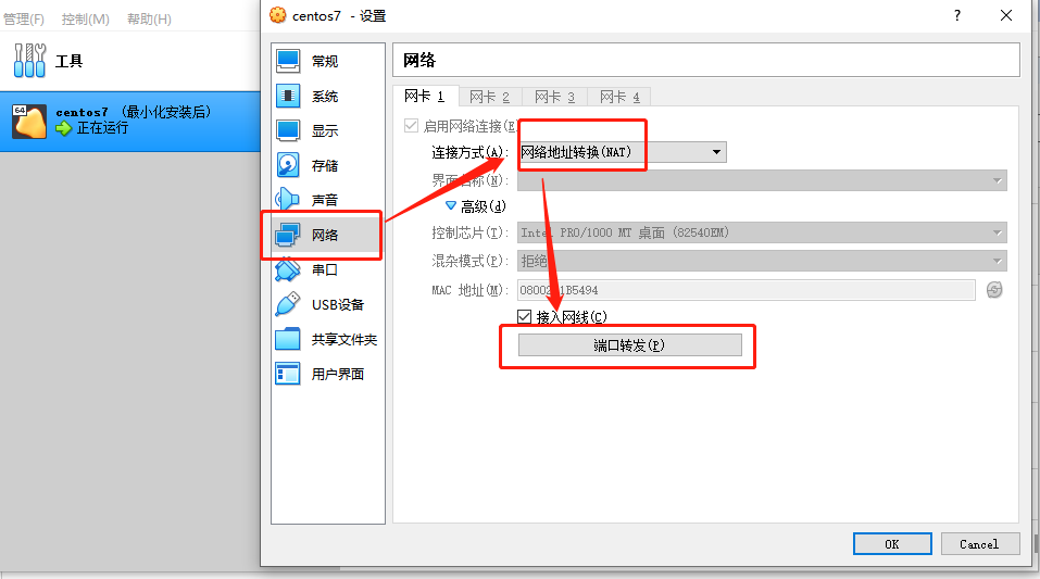 虚拟机设置-->网络(NAT)-->端口转发-->添加配置,设置端口转发