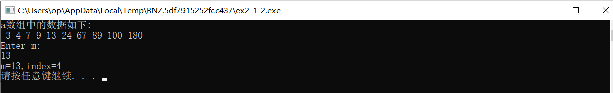 // 调用函数binarySearch()在数组a中查找指定数据项item,并返回查找结果给index