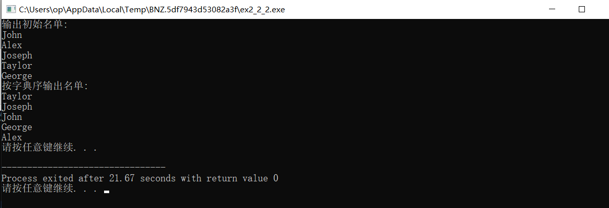 selectSort(name, 5); // 调用选择法对name数组中的字符串排序
