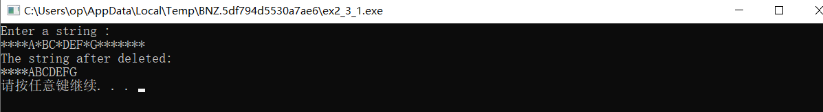 例如,若字符串中的内容为****A*BC*DEF*G*******