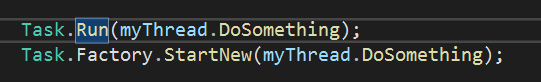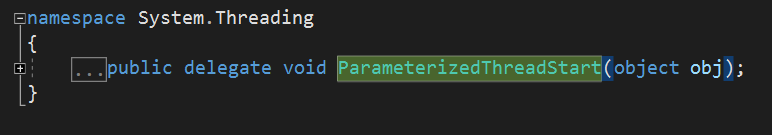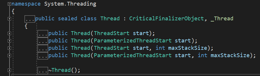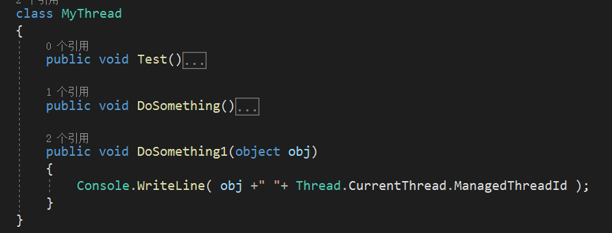 实例化Thread的构造方法有4个,但是一般常用上面2种。即无参无返回值的委托,和有参无返回值的委托,参数的类型是Object。