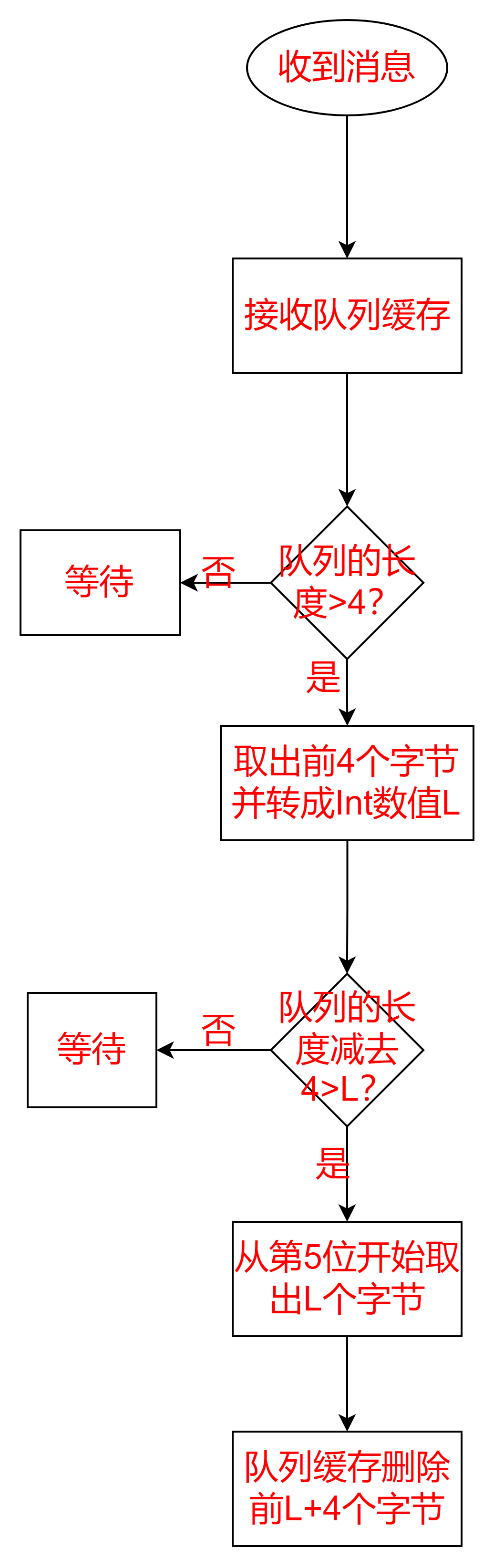 如果不大于则不做处理,继续等待后续消息;如果大于L,则从第5个字节开始取出L个字节作为一个完整的消息,然后再将缓存中前4+L个字节删除。