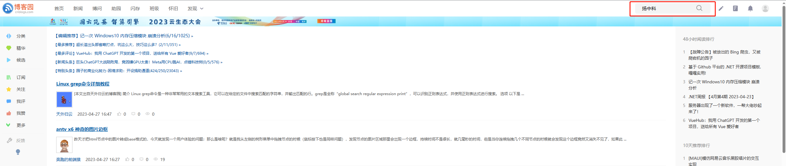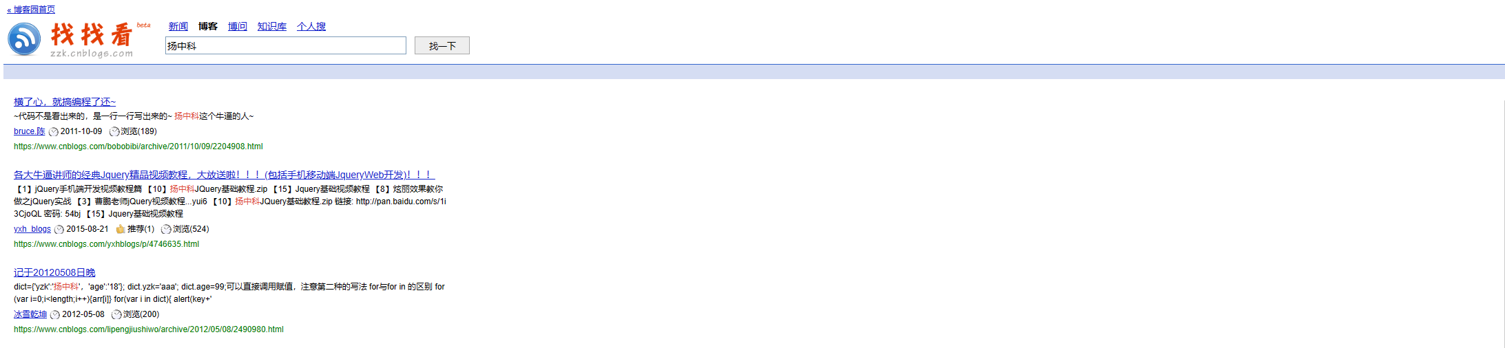 你现在这个搜索功能是啥呢?还不如我直接在百度上搜索杨中科呢。。。但是人家是大佬,百度上一搜就有了,那如果是像我这样不知名的博主,想要在园子里直接找到我的首页该怎么找呢?