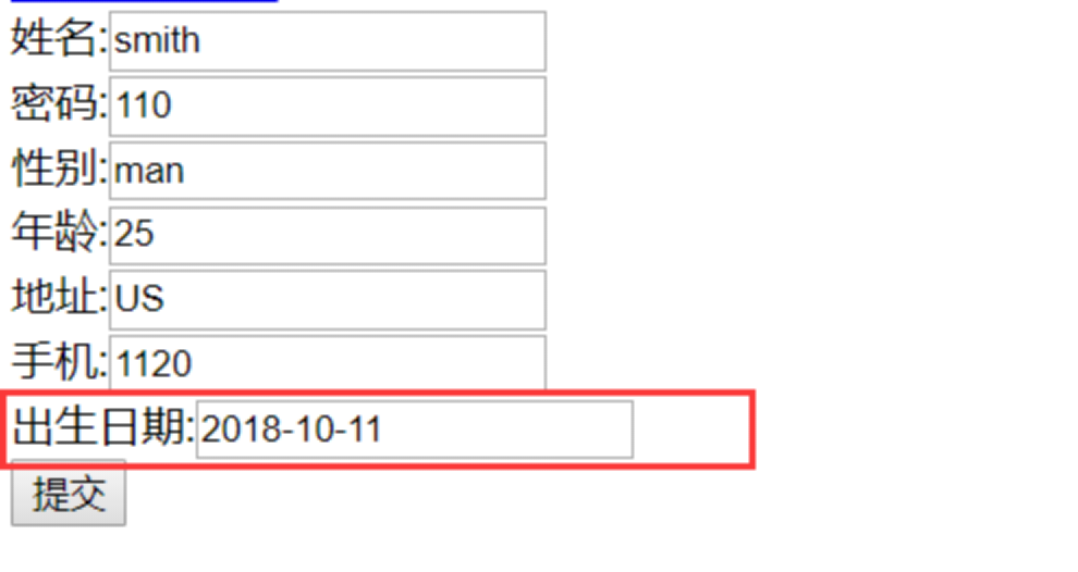 @InitBinder public void initBinder(ServletRequestDataBinder binder) { // 只要网页中传来的数据格式为yyyy-MM-dd 就会转化为Date类型 binder.registerCustomEditor(Date.class, new CustomDateEditor(new SimpleDateFormat("yyyy-MM-dd"), true)); }