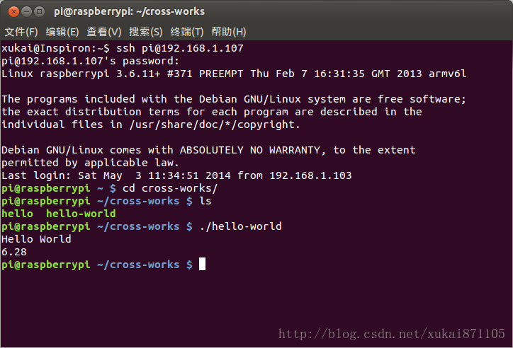 编写一个測试文件,在PC机上完毕编译然后通过FTP上传到树莓派中并运行。