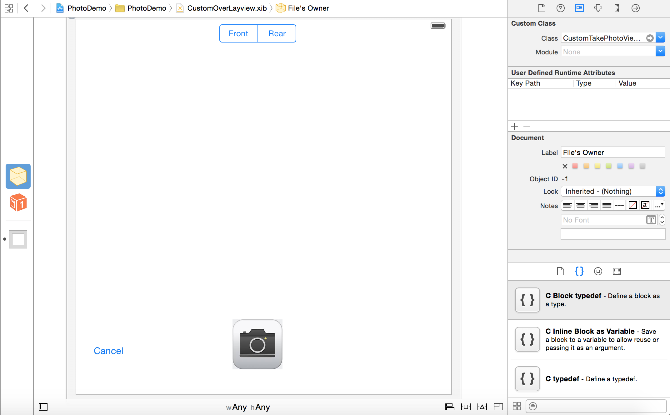 第二步 在显示拍照界面之前,把UI设置成自己想要的,注意,把属性