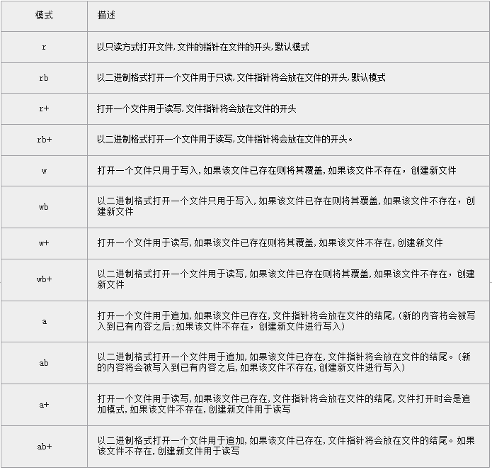 # 读文件 f = open(file='1.txt', mode='r',encoding='utf-8') data = f.read() print(data) f.close() # 循环遍历文件 f = open(file='1.txt', mode='r') for line in f: print(line) # 写文件 f = open(file='2.txt', mode='w', encoding='gbk') f.write('学习python.') f.close() # 追加模式 这个模式是在以存在的文件的末尾最后继续写入内容 f = open(file='2.txt', mode='a', encoding='gbk') f.write('学习java.') f.close() # 读写模式 f = open(file='2.txt', mode='r+', encoding='gbk') data = f.read() print(data) f.write('\n学习C.') f.close() # 写读模式 f = open(file='2.txt', mode='w+', encoding='gbk') f.write('\n新疆.') data = f.read() print(data) f.close()