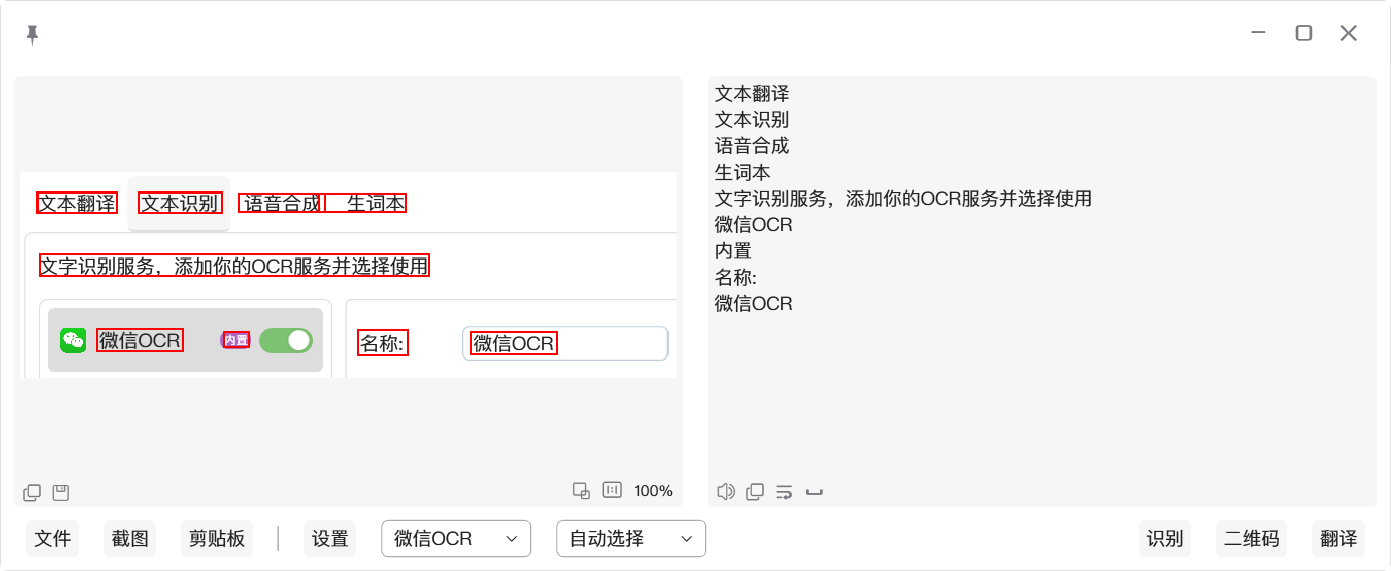 应广大用户要求,软件自1.5.0版本开始已经支持内置微信OCR,无需安装微信即可正常使用微信OCR功能,这样大家就不需要纠结到底安装微信4.x还是3.x版本了,唯一的遗憾可能就是软件包体积翻倍了,来到了60MB,为了避免paddleocr数据包分离后很多人网络困难的情况就不拆分了
