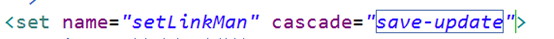 第一步 在用户配置文件中set标签进行配置,cascade值save-update
