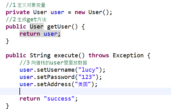 1 实现步骤 第一步 定义对象变量 第二步 生成变量的get方法 第三步 在执行的方法里面向对象中设置值